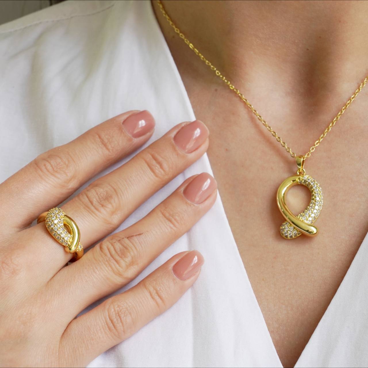 Комплект из 18-каратного желтого золота с медным фианитом