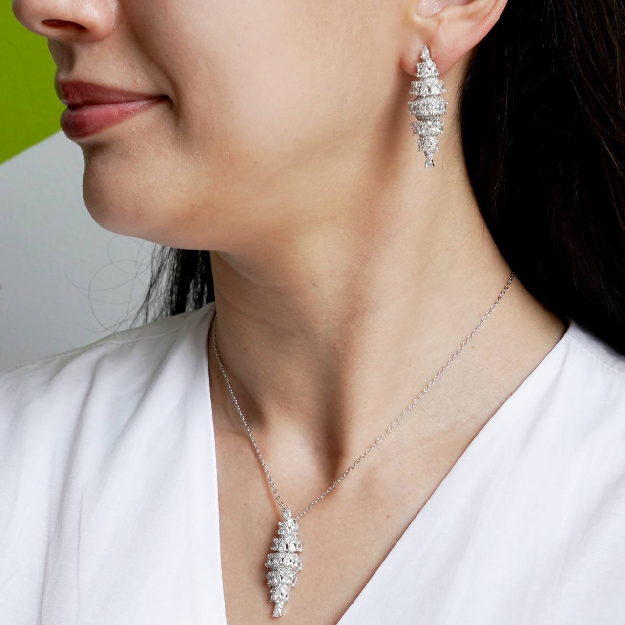 Set of 18 karat white gold plated Copper Fianite