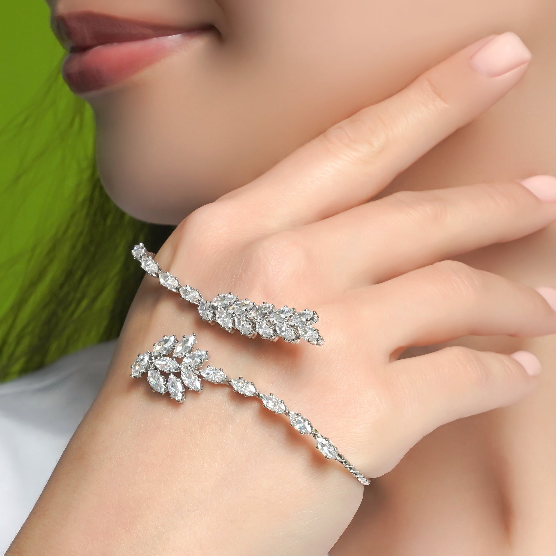Palm ring Brass 18 carat white gold plated bijouterie, Fianit