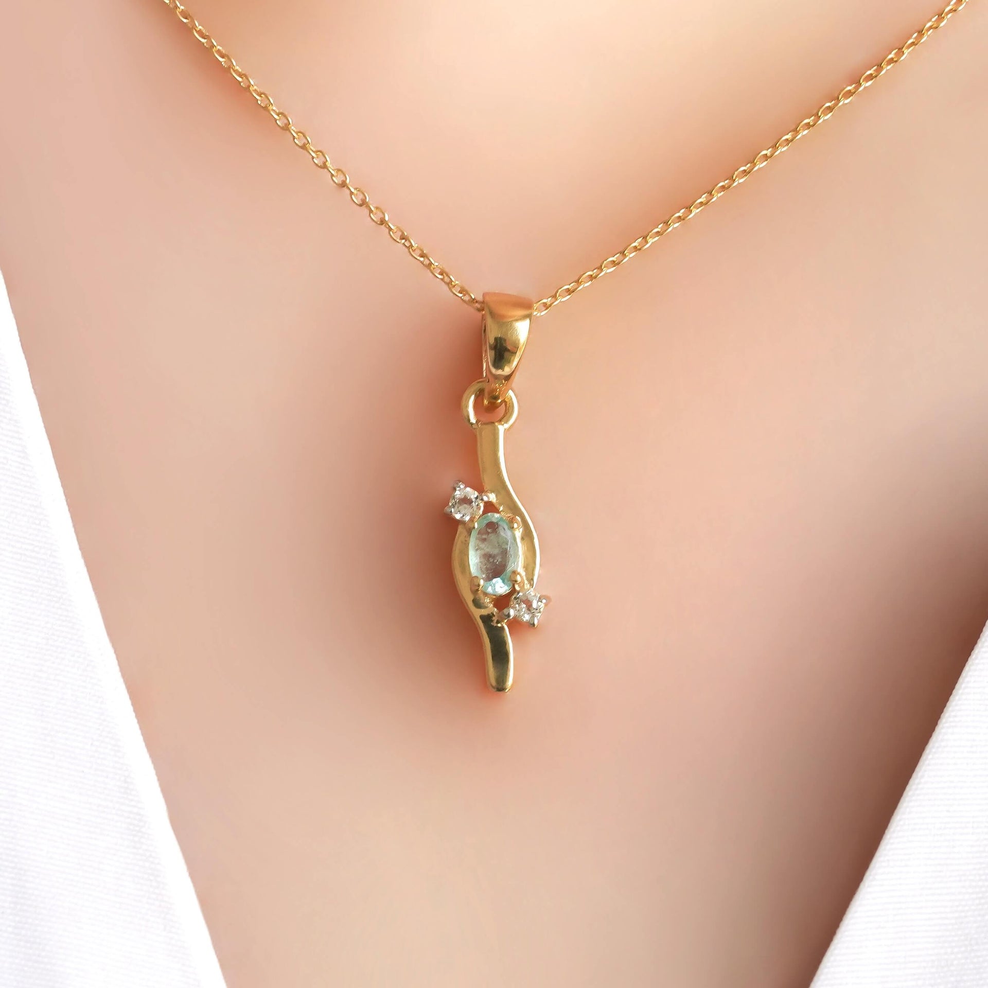 Necklace Silver 925 Brazilian Emerald White Topaz (Gold Plated) Stone Weight (Carat): 0.29 Jewelry Weight (gr) 1.15