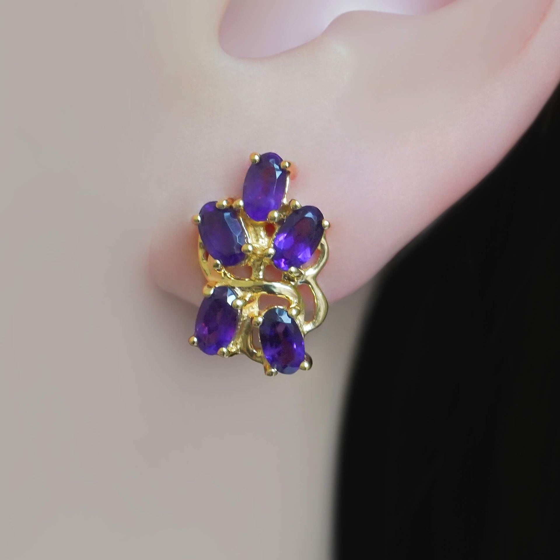 Earrings Silver 925 African Amethyst (Gold Plated) Stone Weight (Carat): 2.25 Jewelry Weight (gr) 3.4