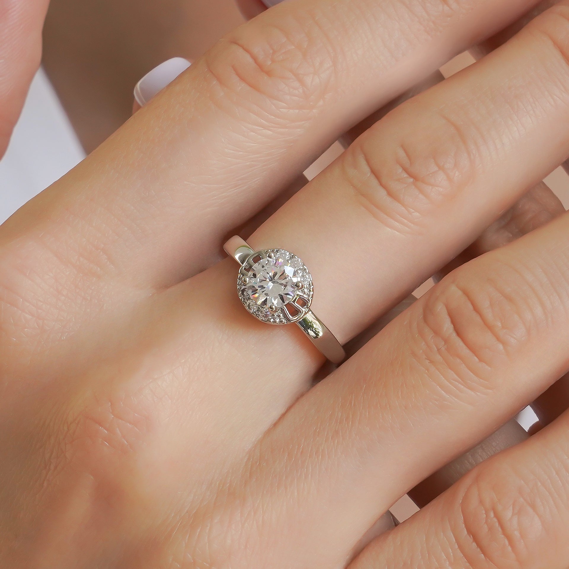 Ring 18 carat white gold plated Copper Fianite