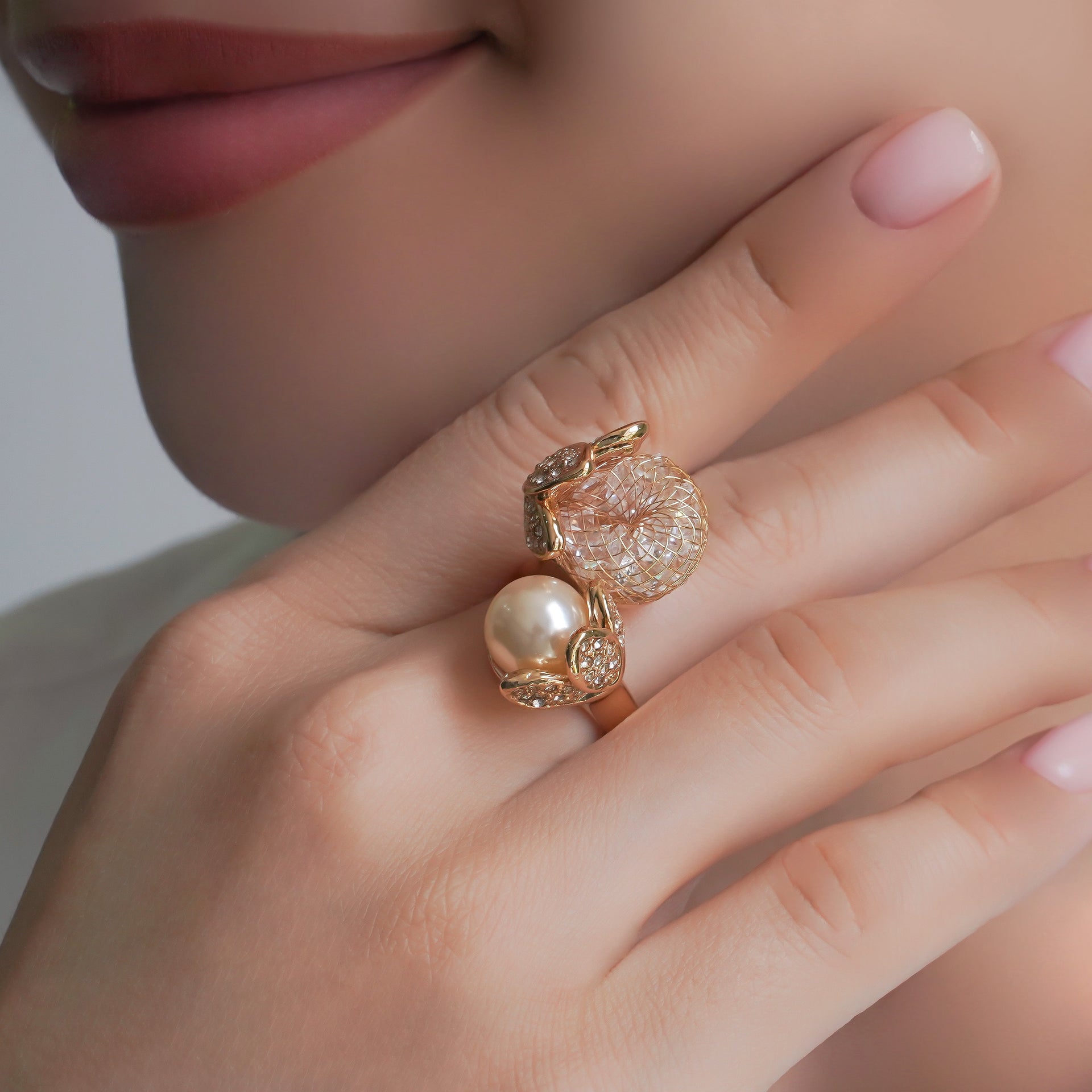Ring 18 carat gold plated Copper Crystal