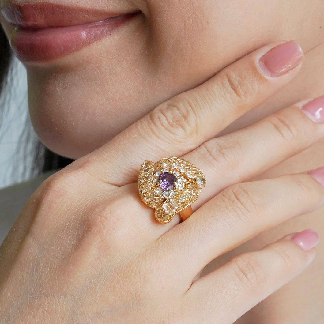 Ring 18 carat gold plated Copper Crystal