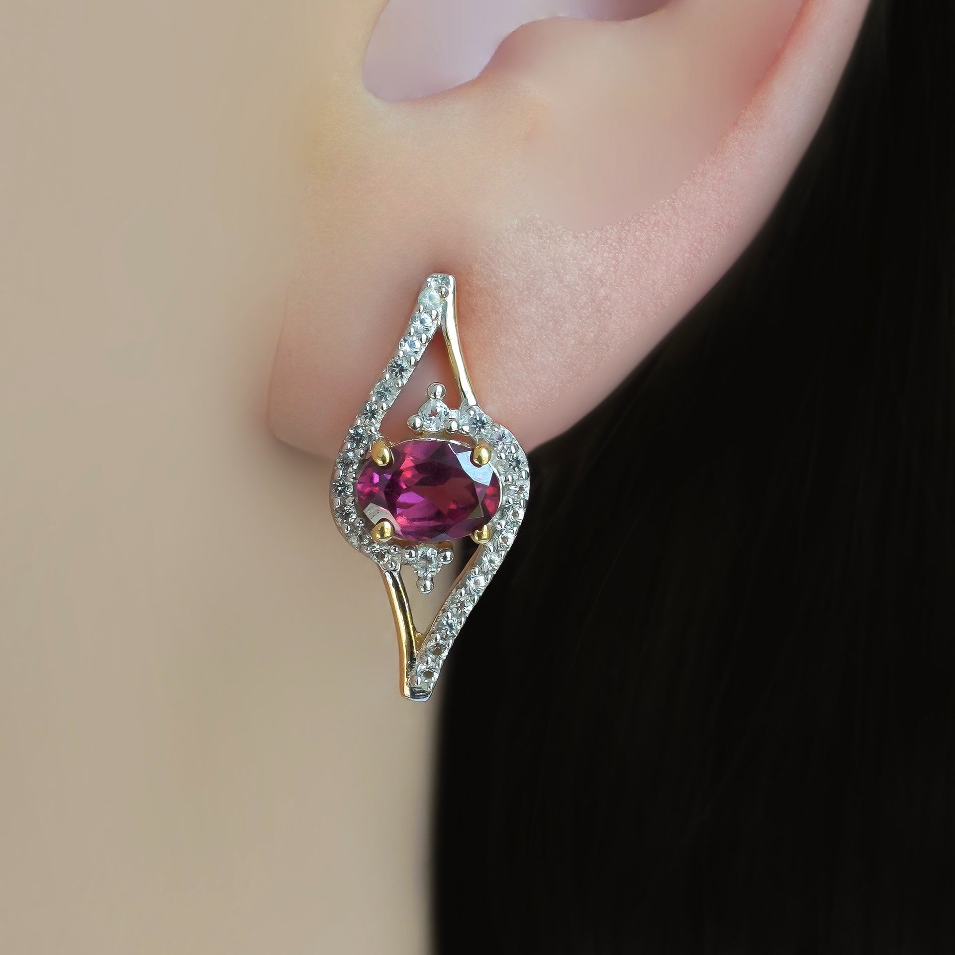 Zirak Silver 925 Rhodolite White Topaz (Gold Plated) Stone Weight (Carat): 2.21 Jewelry Weight (gr) 3.18