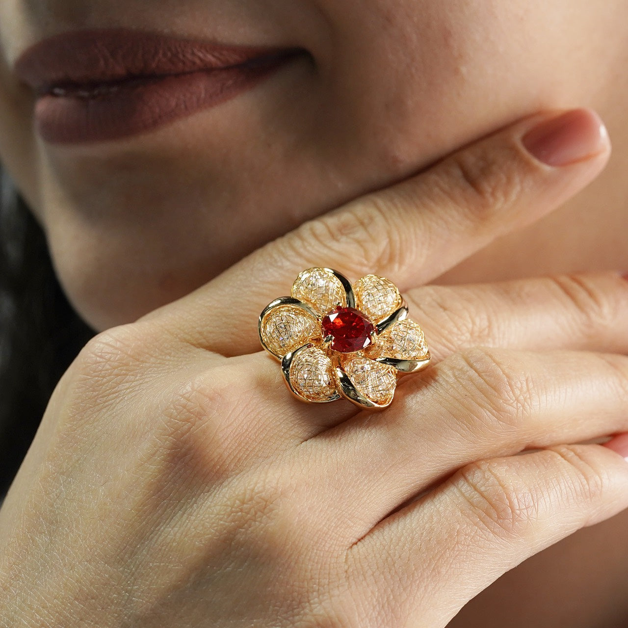 Ring zargarlik qotishma kristallari, 18 karat oltin bilan qoplangan